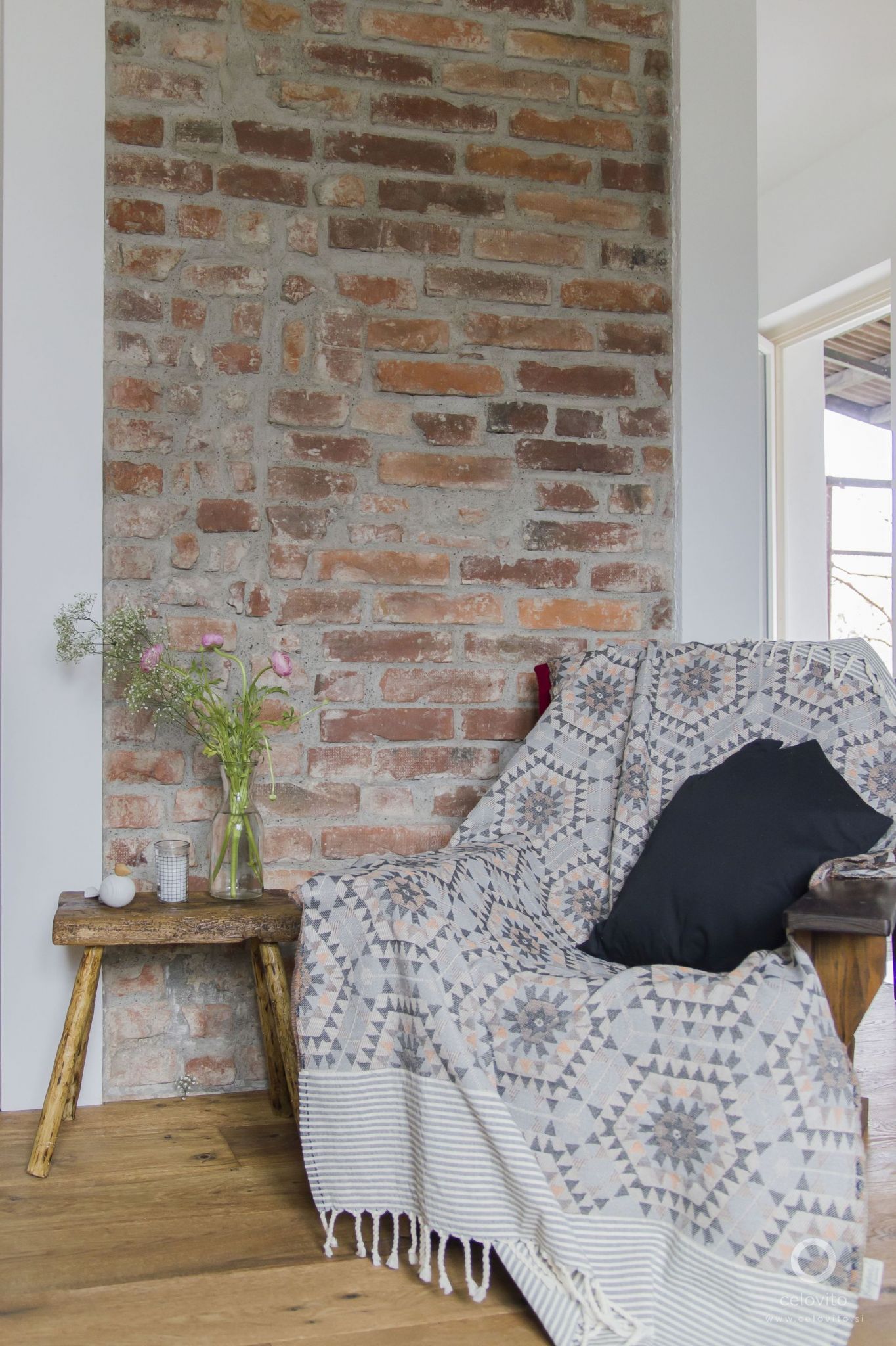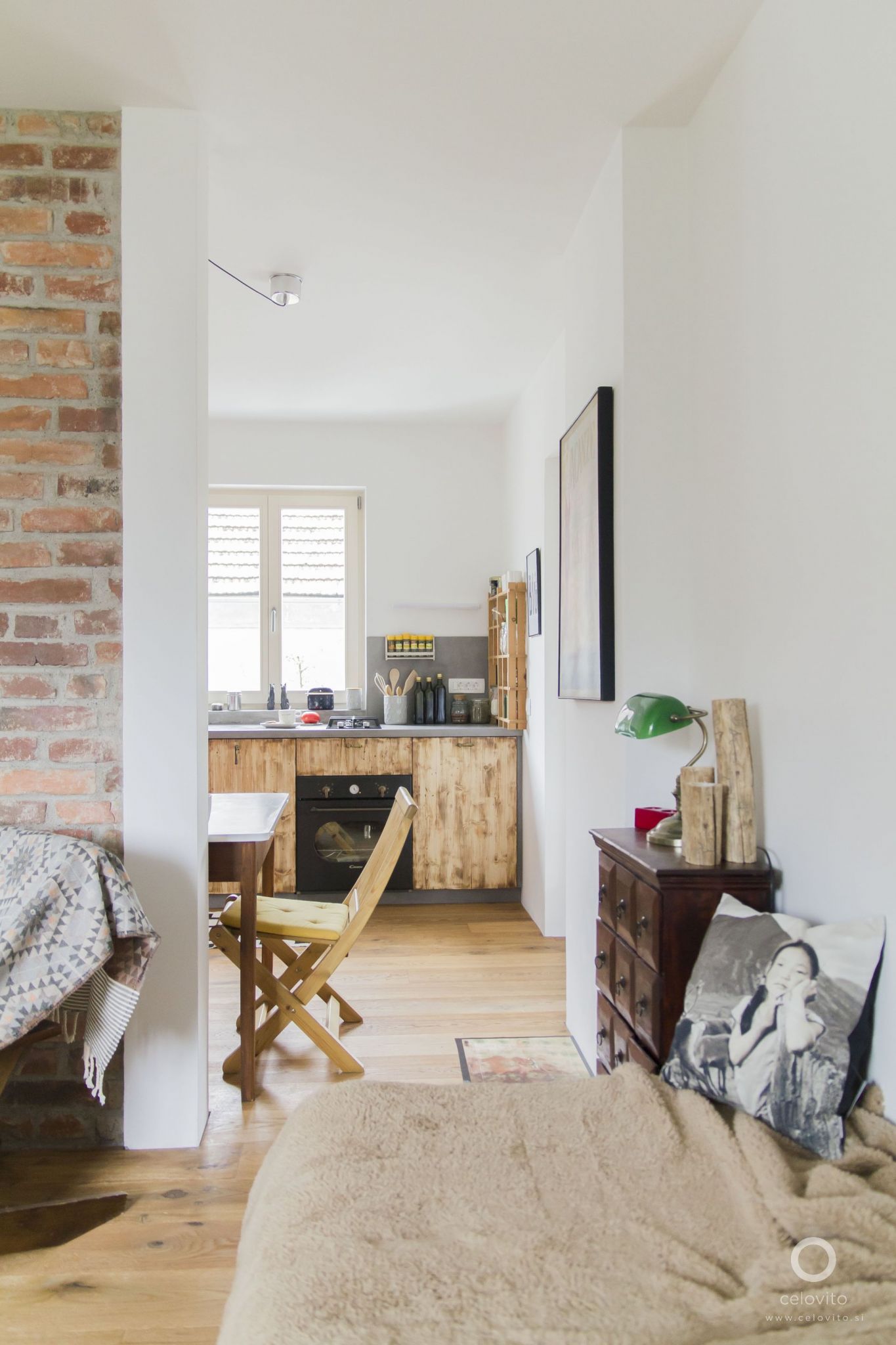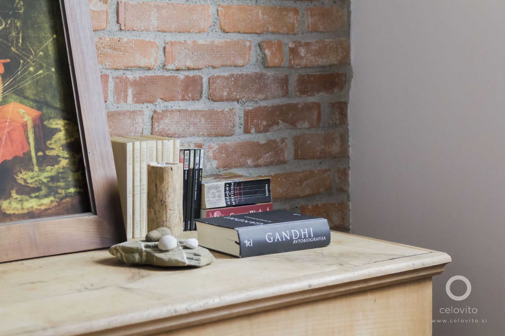 Po temeljitem pogovoru smo se odločili, da ustvarimo stanovanje, ki bo na primeren način izražalo svojo zgodovino in se prepletalo z zgodbo lastnika. Potrebno je bilo porušiti nekaj sten, tako da smo prostore odprli in jih med seboj povezali. Majhni temačni prostori so se tako preobrazili v čudovit, svetel in odprt dom. V osrednjem dnevnem prostoru ima glavno vlogo čudovita opečnata stena, ki smo jo ohranili kot vez med starim in novim. Nasproti nje je kamninska peč na drva, ki pozimi pričara domačnost, toploto in prijeten vonj po lesu.